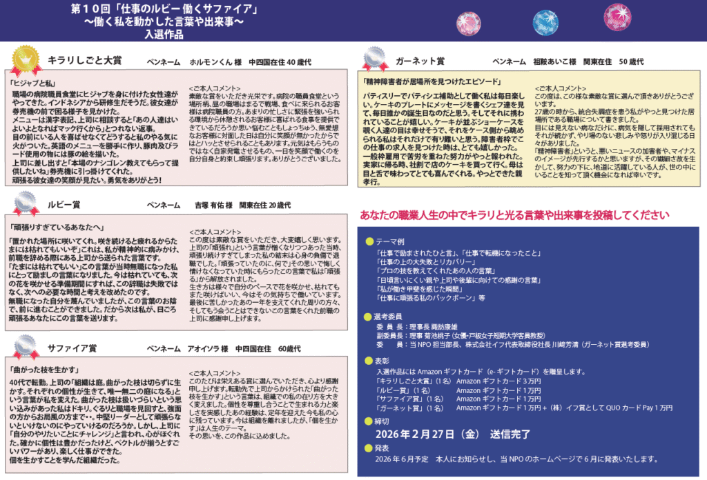 *ガーネット賞は障がい者雇用支援サービスを行う株式会社イフによる協賛事業です